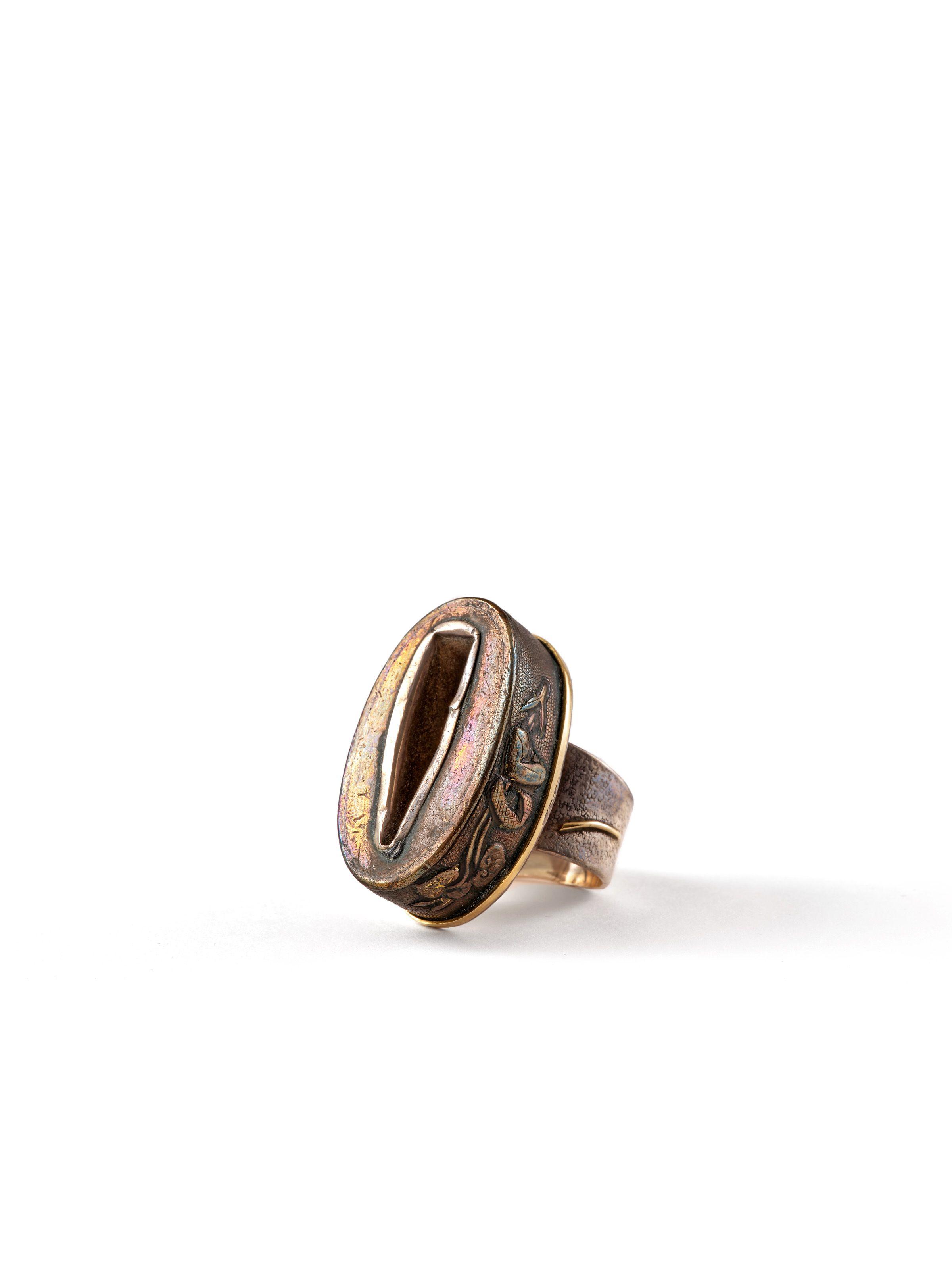 Fundstück („Tsuba“ oder japanischer Schwertgriff), Sterlingsilber, Gold