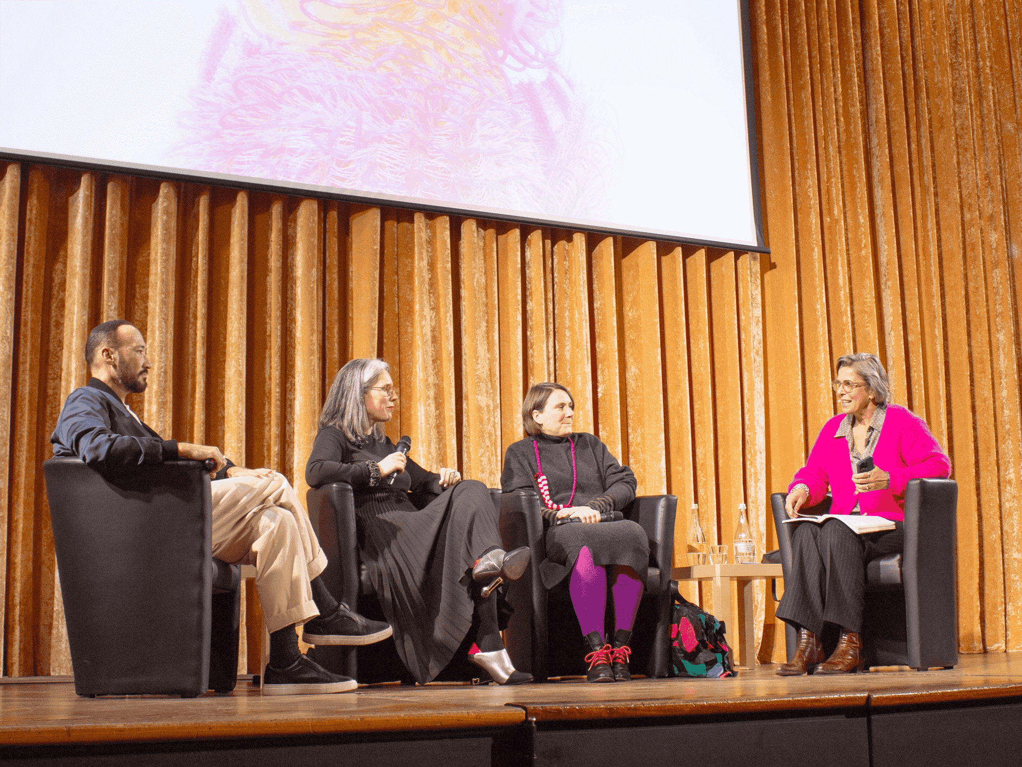 Die Podiumsdiskussion wurde unter der Moderation von Tulga Beyerle (Direktorin, Museum für Kunst & Gewerbe Hamburg) geführt. Das Podium war besetzt mit Cécile Feilchenfeldt (Textildesignerin, Paris), Bodo Sperlein (Produktdesigner, London / Ausstellungsgestaltung „Jugendstil. Made in Munich“) und Silvia Weidenbach (Schmuckkünstlerin, Glasgow / London).