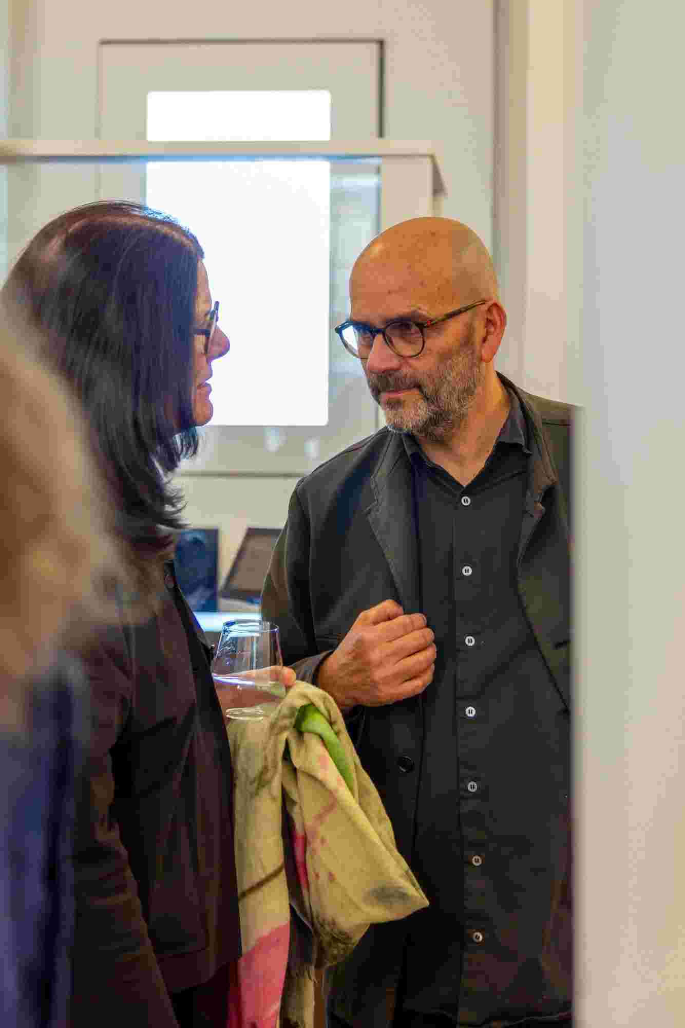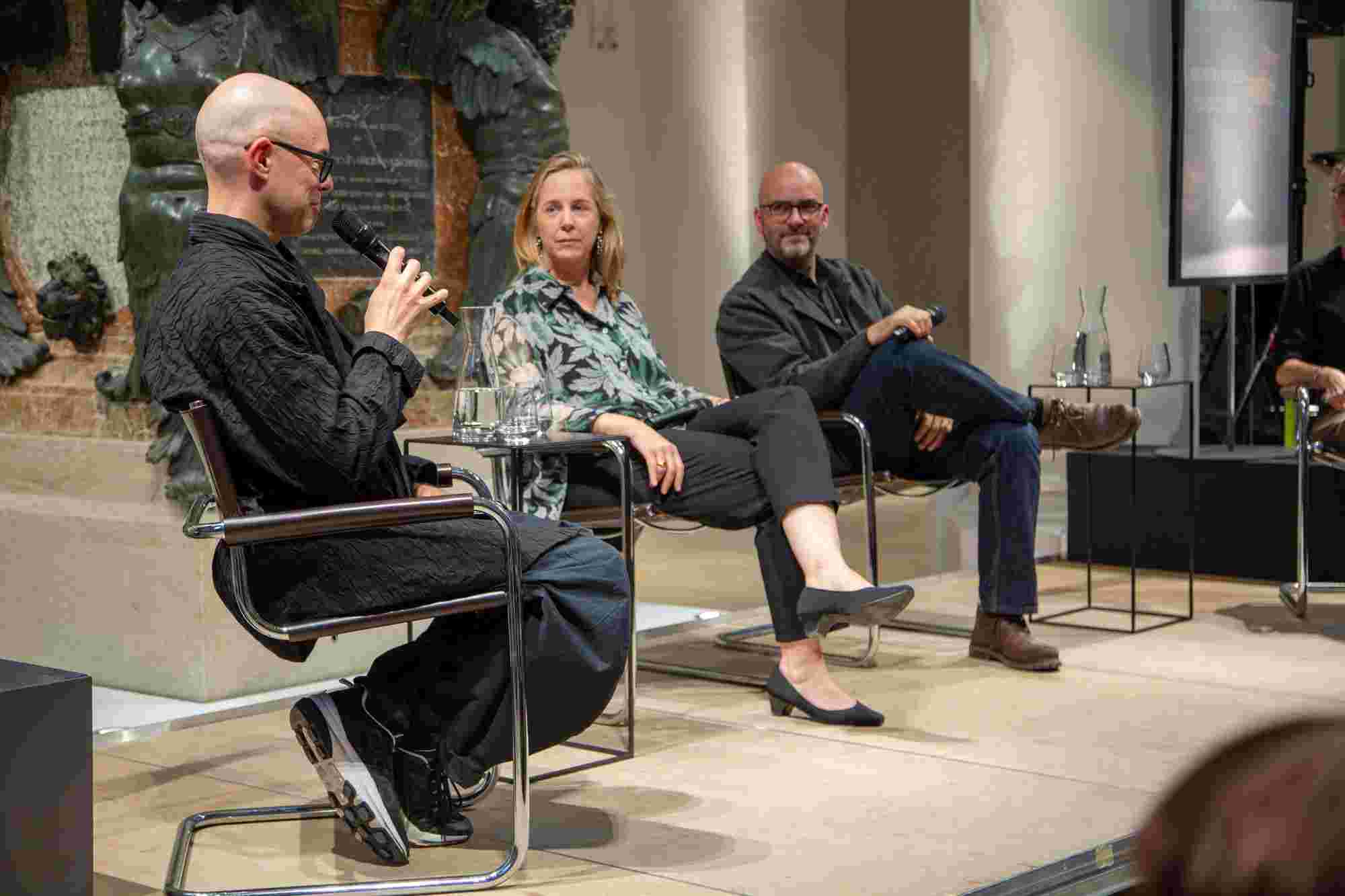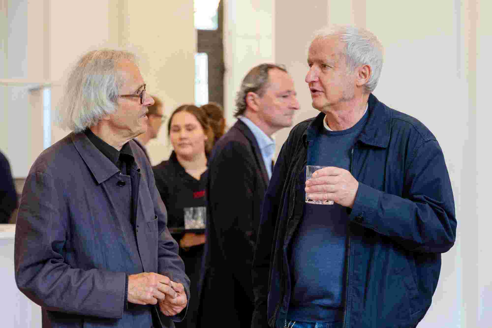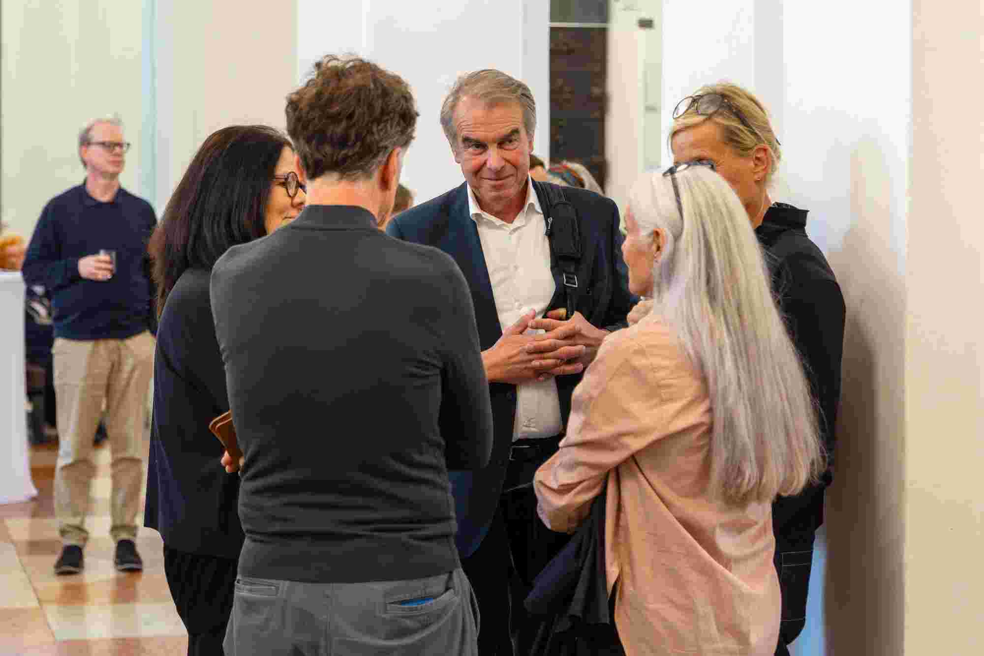 Unter dem Titel „Resonanzen“ sprachen der Künstler Ernst Gamperl, der Züricher Jazzpianist Nik Bärtsch und Sheila Loewe, Vorsitzende der Loewe Foundation, mit Julie Metzdorf (Moderation), über die Beziehung von Material und Mensch, über Hingabe und Aufmerksamkeit im Schaffensprozess und die Bedeutung von Wegbegleiter:innen. Musikalisch begleitet wurde der Abend von Nik Bärtsch.