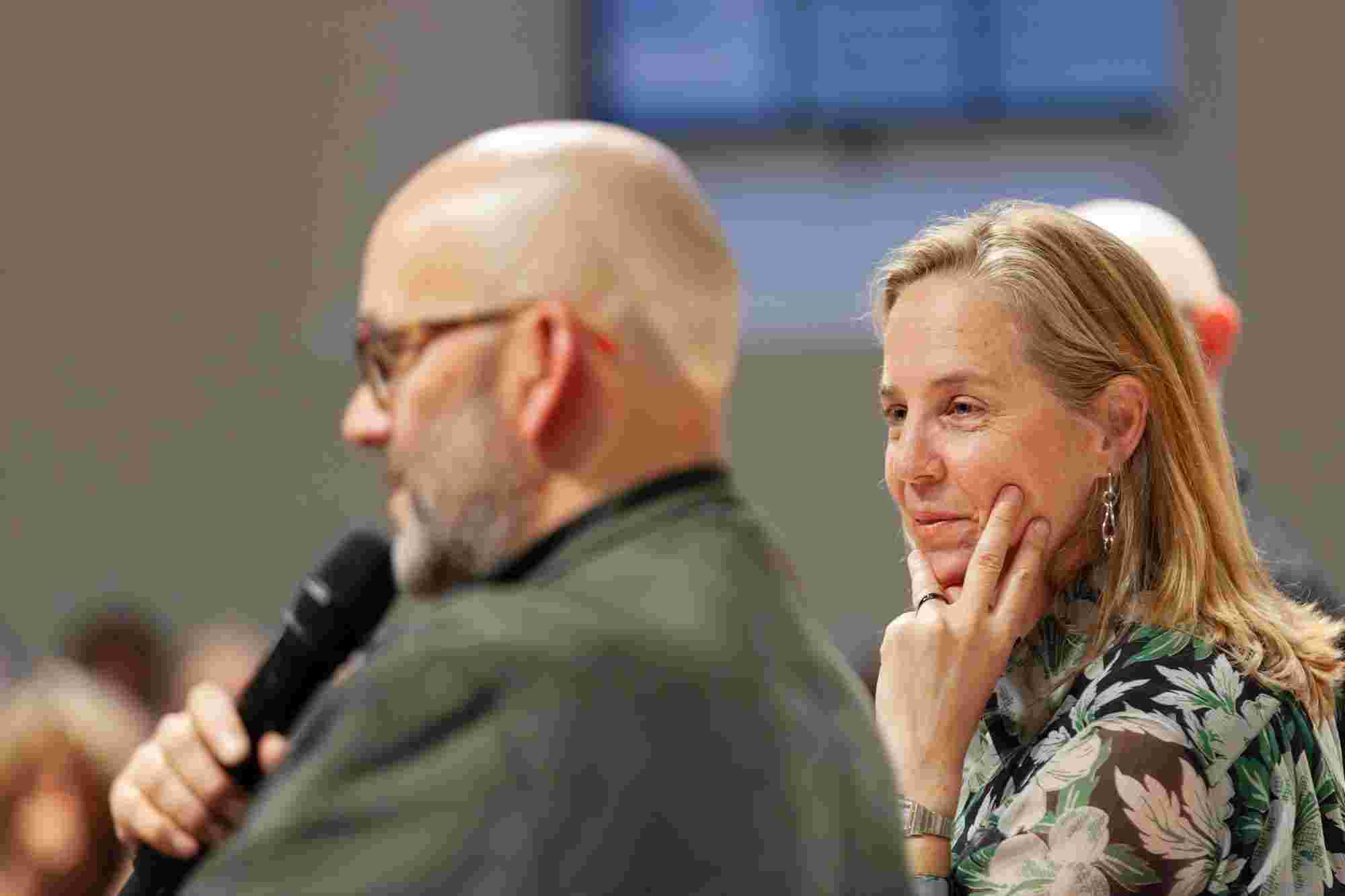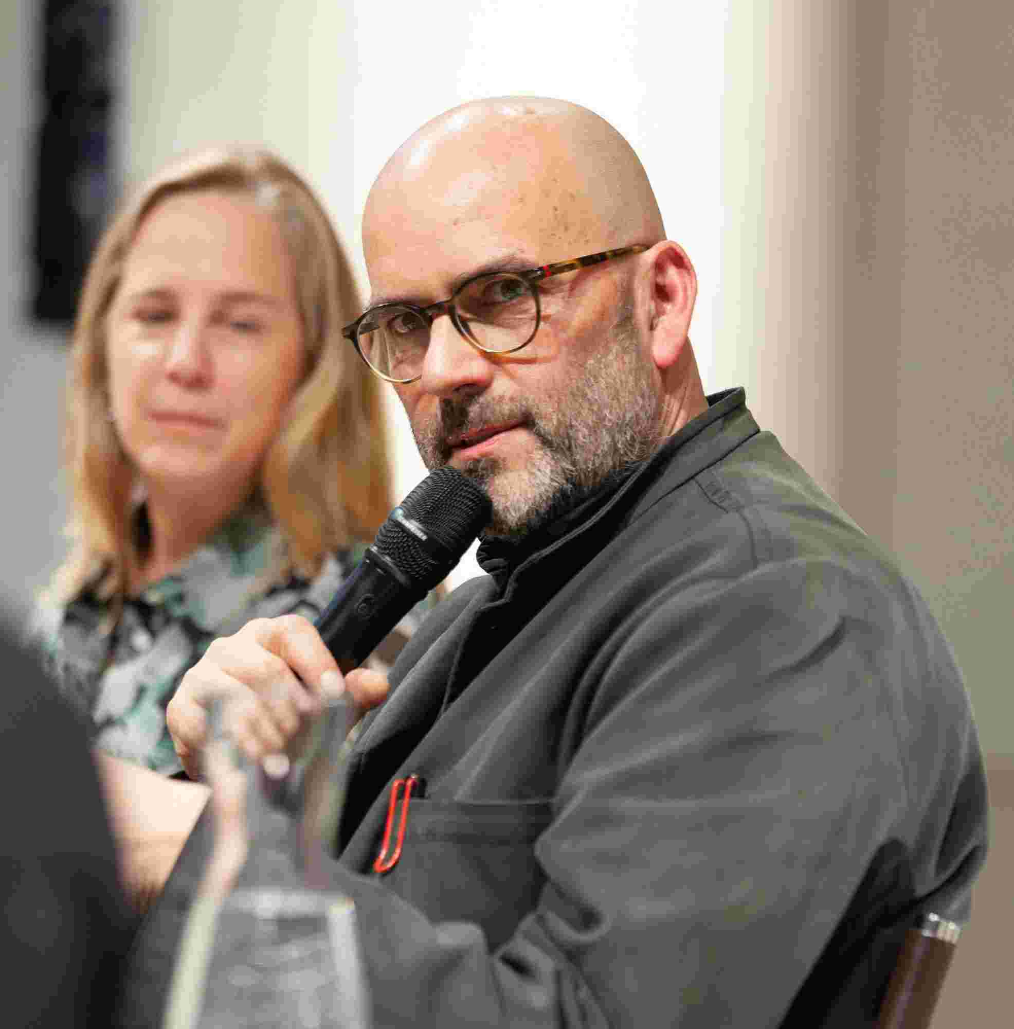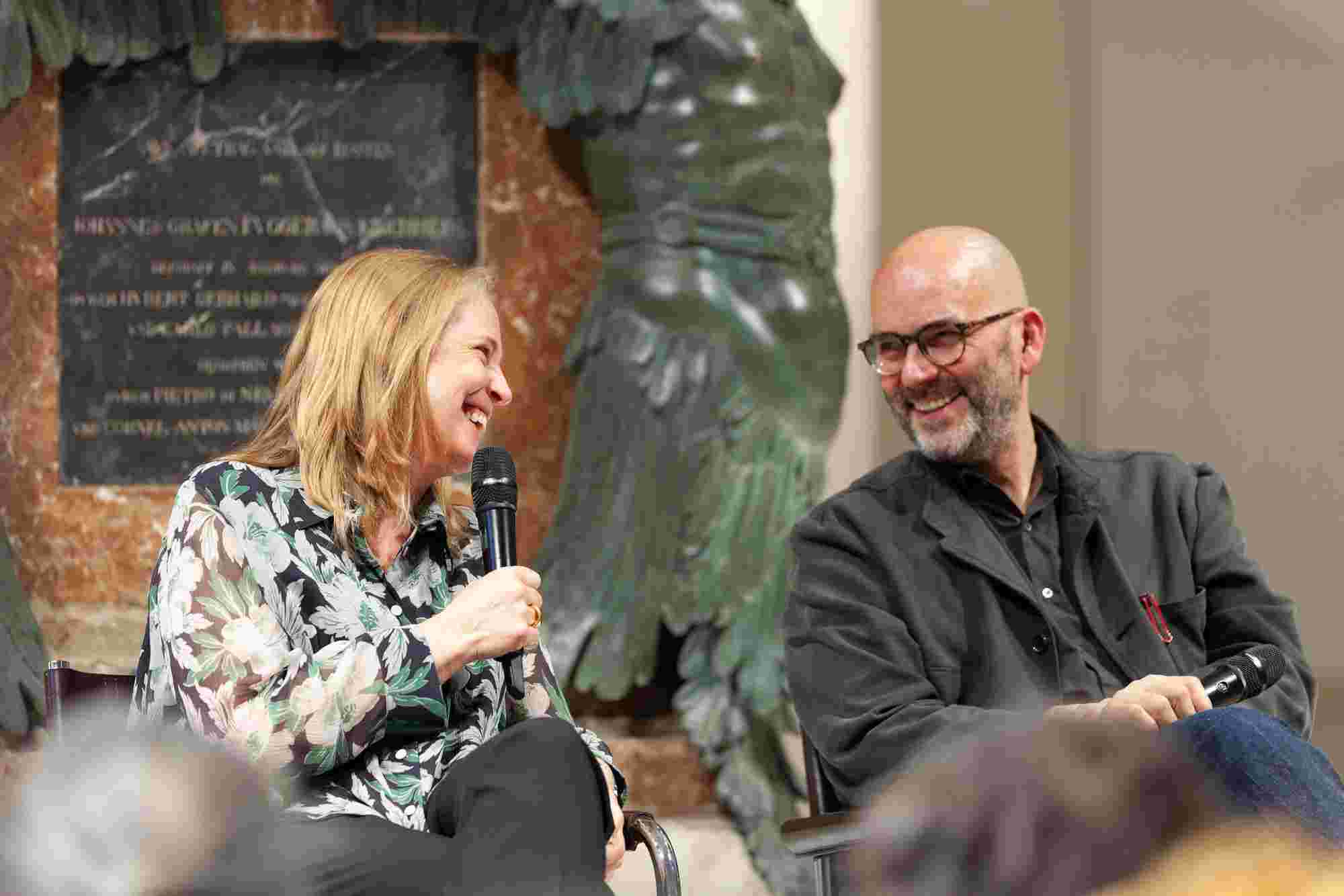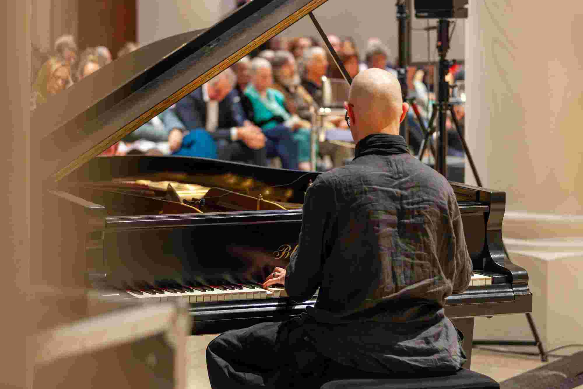 Unter dem Titel „Resonanzen“ sprachen der Künstler Ernst Gamperl, der Züricher Jazzpianist Nik Bärtsch und Sheila Loewe, Vorsitzende der Loewe Foundation, mit Julie Metzdorf (Moderation), über die Beziehung von Material und Mensch, über Hingabe und Aufmerksamkeit im Schaffensprozess und die Bedeutung von Wegbegleiter:innen. Musikalisch begleitet wurde der Abend von Nik Bärtsch.