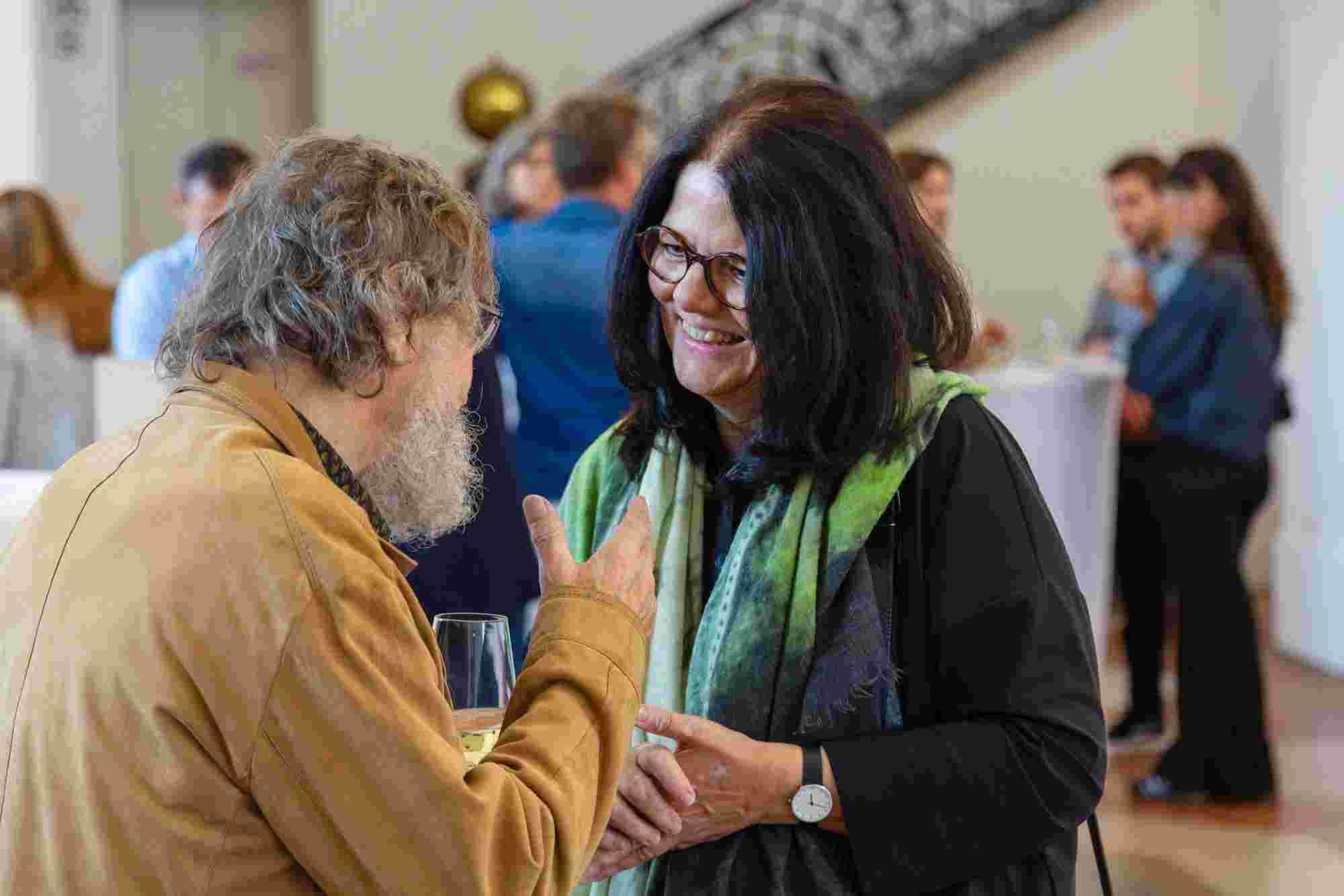 Im Anschluss genossen Gäste und Besucher:innen im Foyer des BNM den persönlichen Austausch bei Getränken und Imbiss.